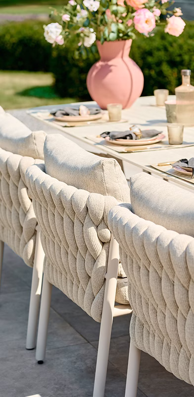 Onze materialen zijn met zorg gekozen om de perfecte balans tussen comfort en duurzaamheid te bieden. Weerbestendig en bestand tegen alle weersomstandigheden, terwijl de stoffen bijdragen aan een aangename zit, ongeacht het seizoen.