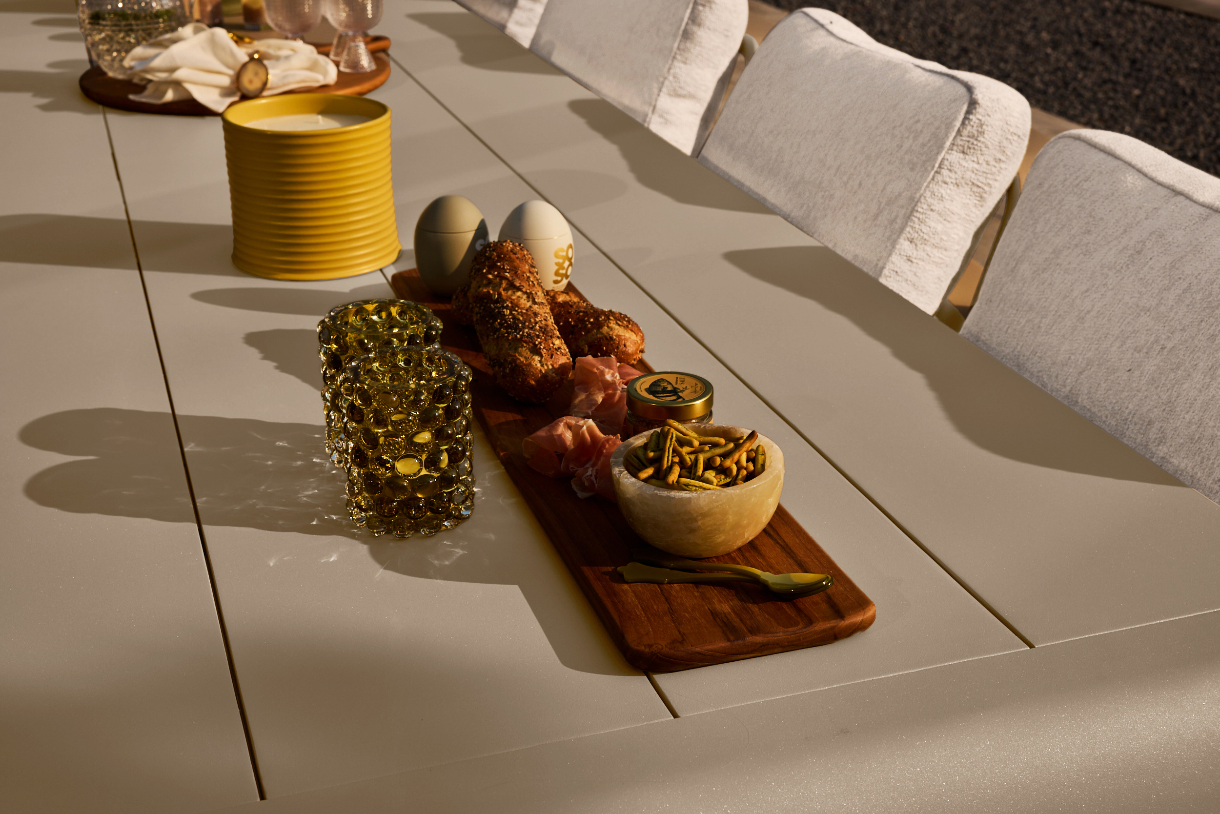 Ob Sie sich nun für acht Stühle oder ein größeres Arrangement für zehn Personen entscheiden, der Basta-Tisch ist immer das stilvolle Herzstück Ihrer Terrasse. Das Design lässt sich auch perfekt mit verschiedenen Stühlen aus der SUNS-Kollektion kombinieren.