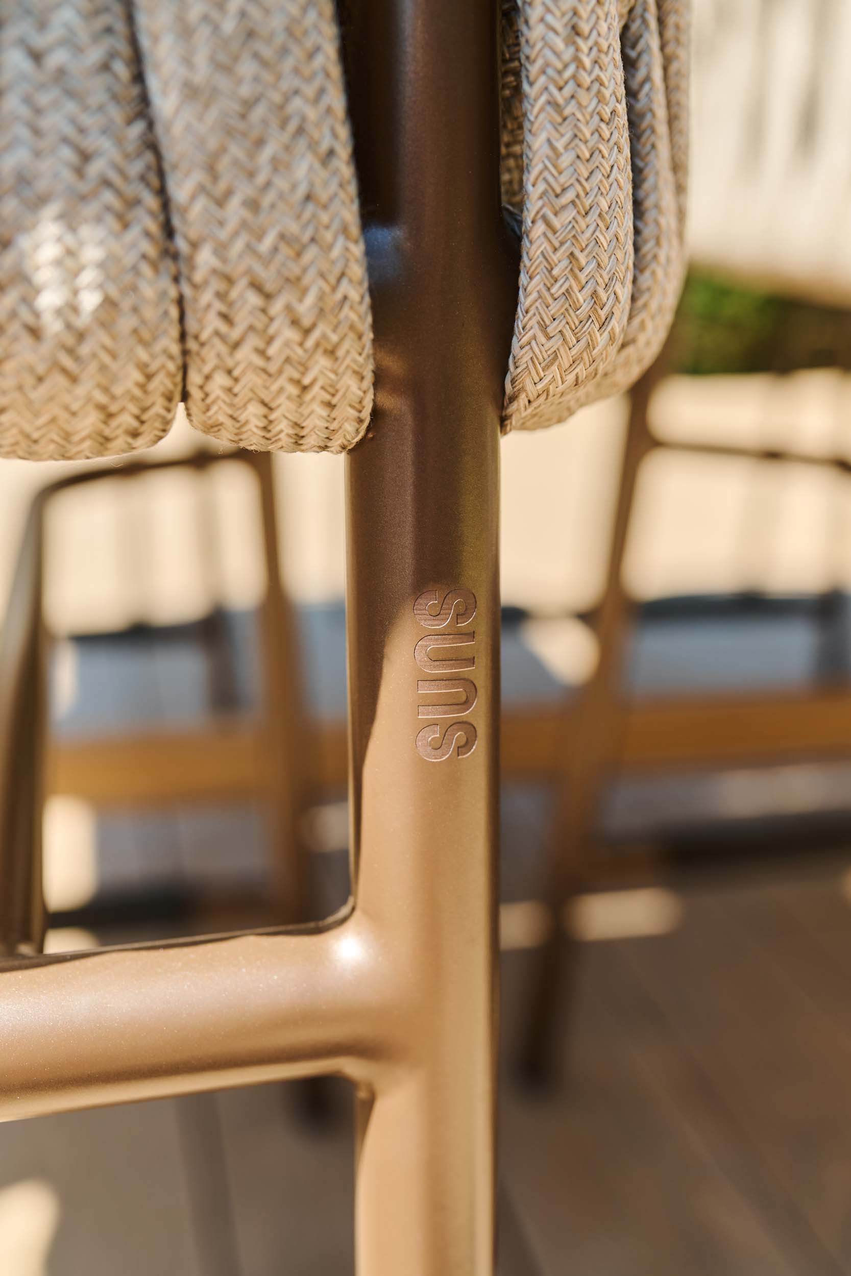 Ein einzigartiges Element von SUNS Fiavè ist die Ummantelung der Arm- und Rückenlehnen. Ein diagonales Seilgeflecht, in den Farben Misty rope oder Clouded rope. Das Seil ist für zusätzliches Volumen gepolstert und hat eine weiche Oberfläche für einen angenehmen Griff.