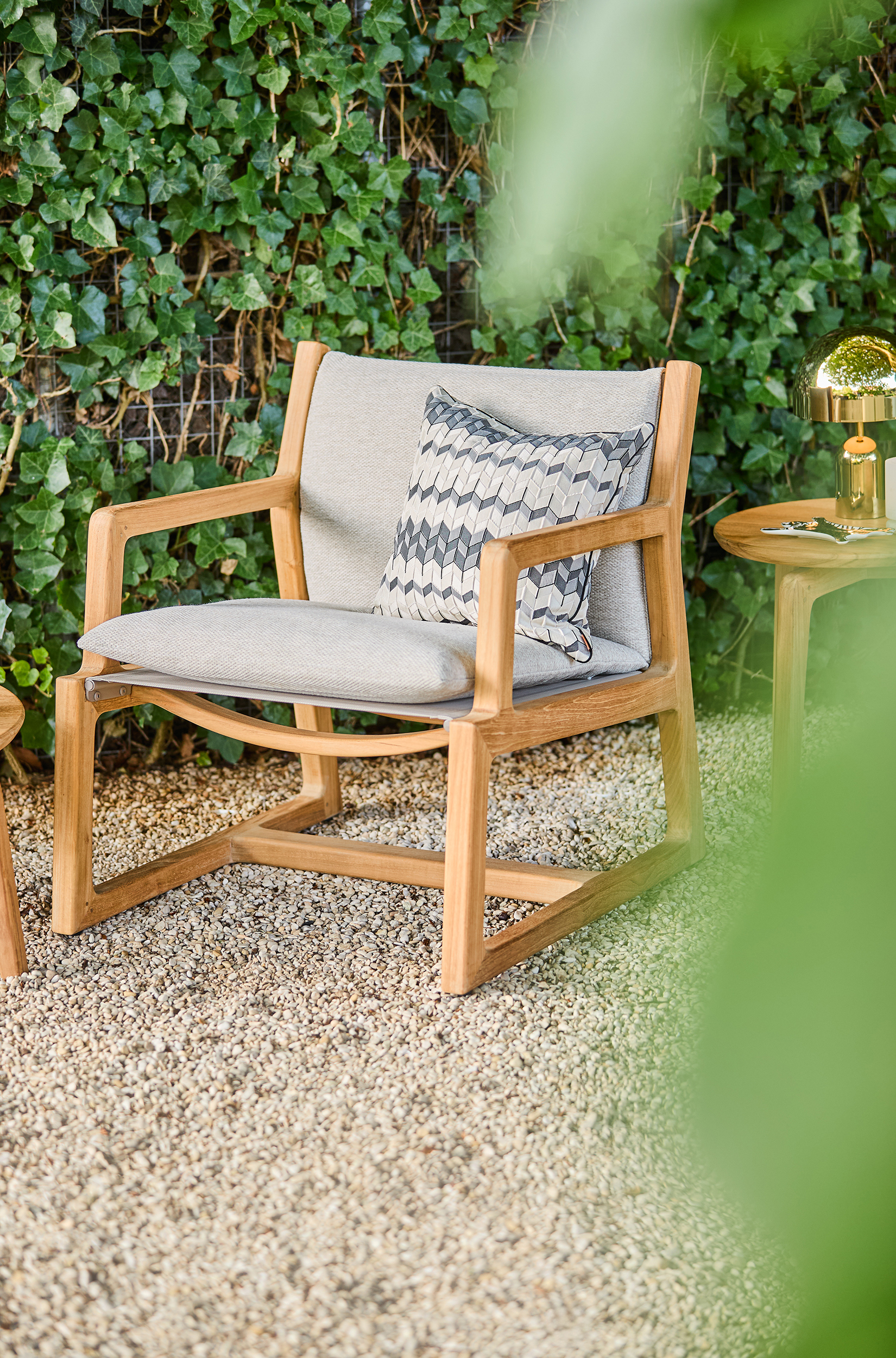 SUNS verwendet ausschließlich zertifiziertes Teakholz. Dieses hochwertige Teakholz ist witterungsbeständig und langlebig. Teakholz verfärbt sich mit der Zeit in warm-graue Töne. Dies ist Teil des natürlichen Charakters des Holzes und verleiht dem Stuhl ein einzigartiges Aussehen. Die Kissen und der Sitz bestehen aus Quick Dry Foam®. Dieses Material hat eine offenzellige Struktur, durch die (Regen-)Wasser schnell abfließen kann und die Luftzirkulation maximiert wird. Der hochwertige Außenstoff ist wasserabweisend, wetterfest und farbecht.