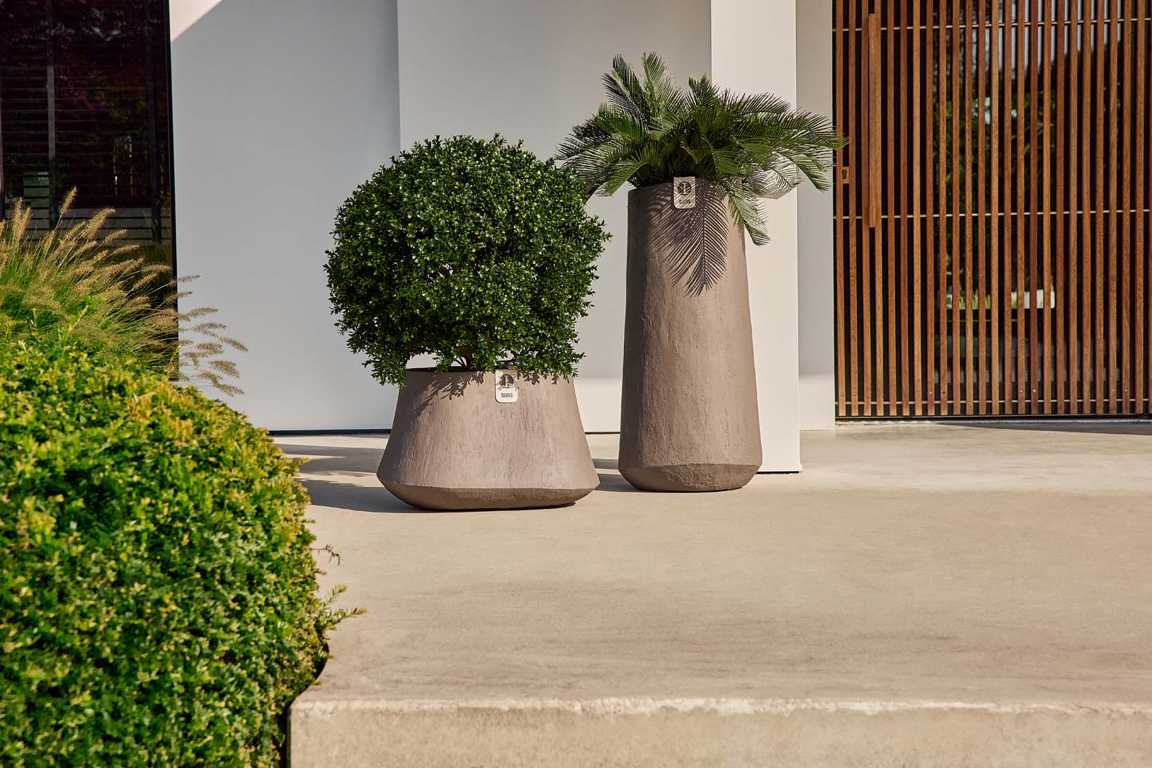 The Rondello series is distinguished by soft, organic shapes and an earthy feel. The rounded lines give the design a natural balance, while the subtly rough finish provides depth. Rondello is available as a pot and as a vase, in three characterful colors: Ash brown, Camel sand and Brick. Warm tones that pair beautifully with teak, aluminum and rich outdoor fabrics.