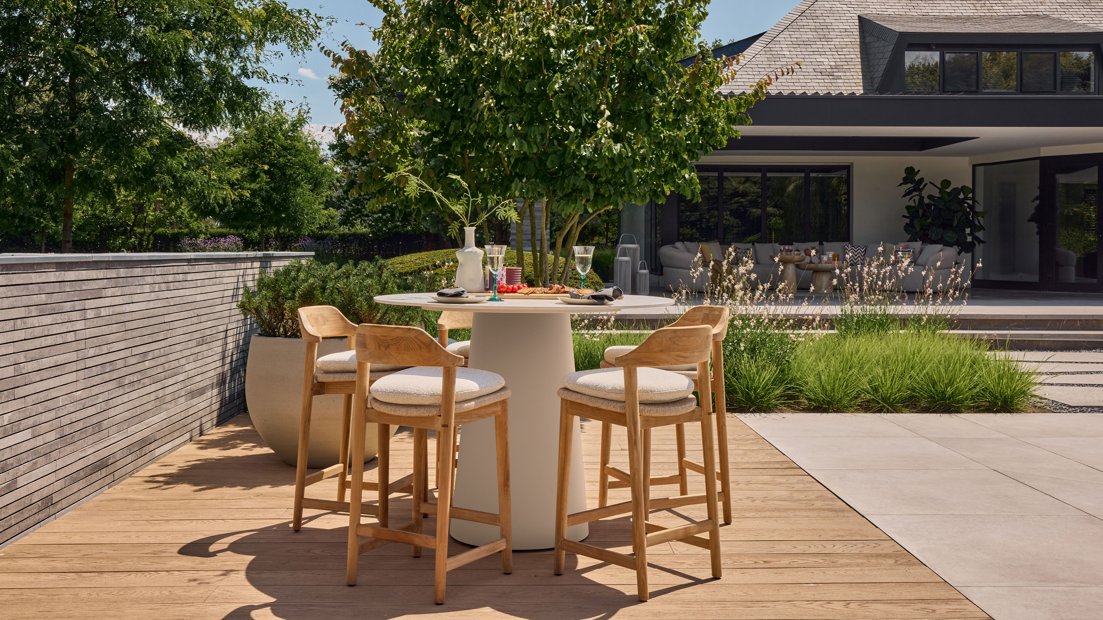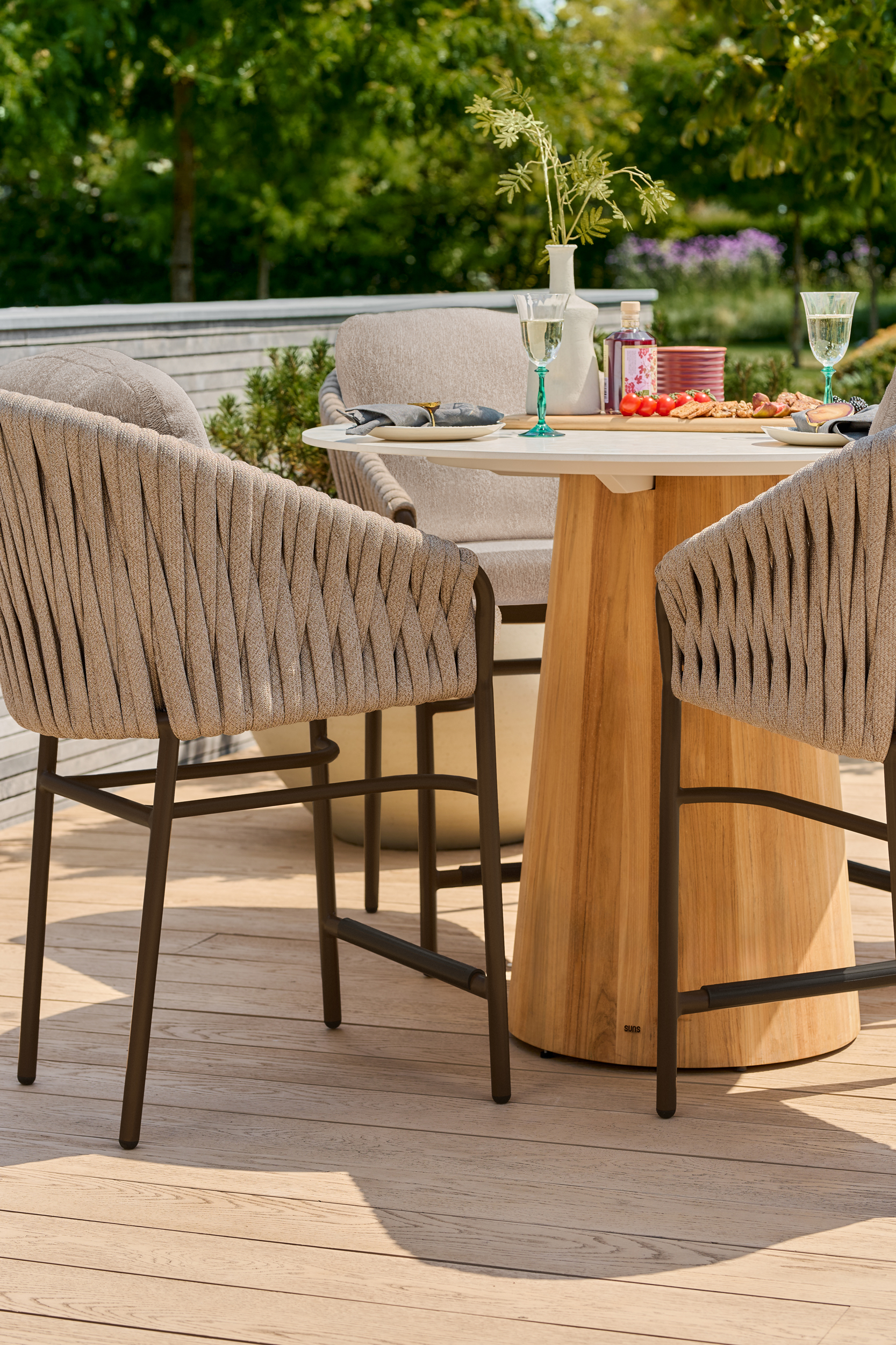 Round brings people together. With the Sorolo low bar table you create a warm, inviting atmosphere on your terrace. Choose a table top in teak or the refined look of Neolith. Whatever your preference, Sorolo turns every gathering into a stylish moment.