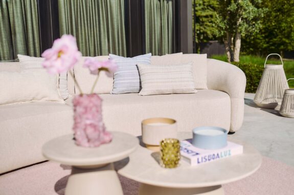 Outside gets softer with Venosa. A lounge set that invites you to stay seated, relax longer and experience every moment more intensely. Round shapes, light tones and rich upholstery make Venosa a natural eye-catcher in any outdoor space.