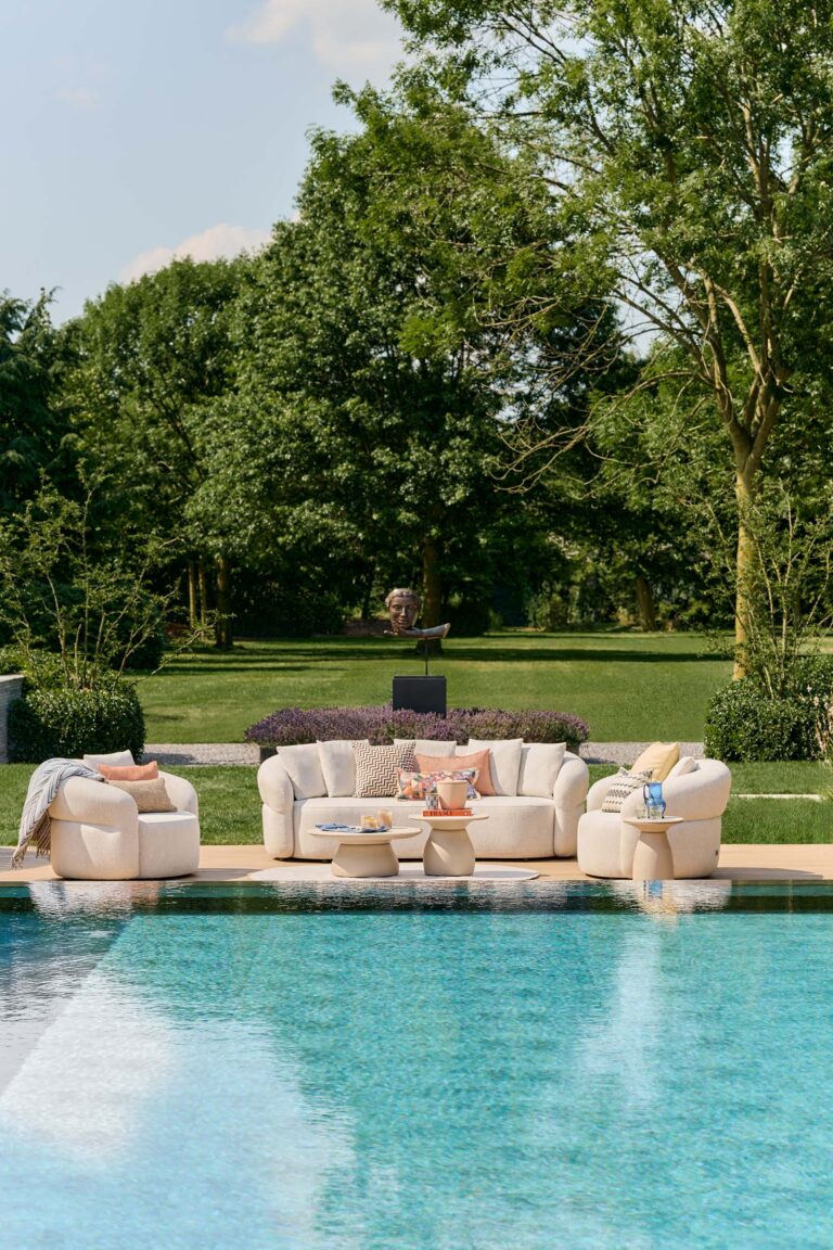 The Venosa sofa set consists of a generous sofa with two lounge chairs. Together, they form a comfortable arrangement that focuses on balance and security. Perfect for those who like to sit together, but also want to keep space for their own moments. The set feels like an extension of your interior and takes outdoor living to a higher level.