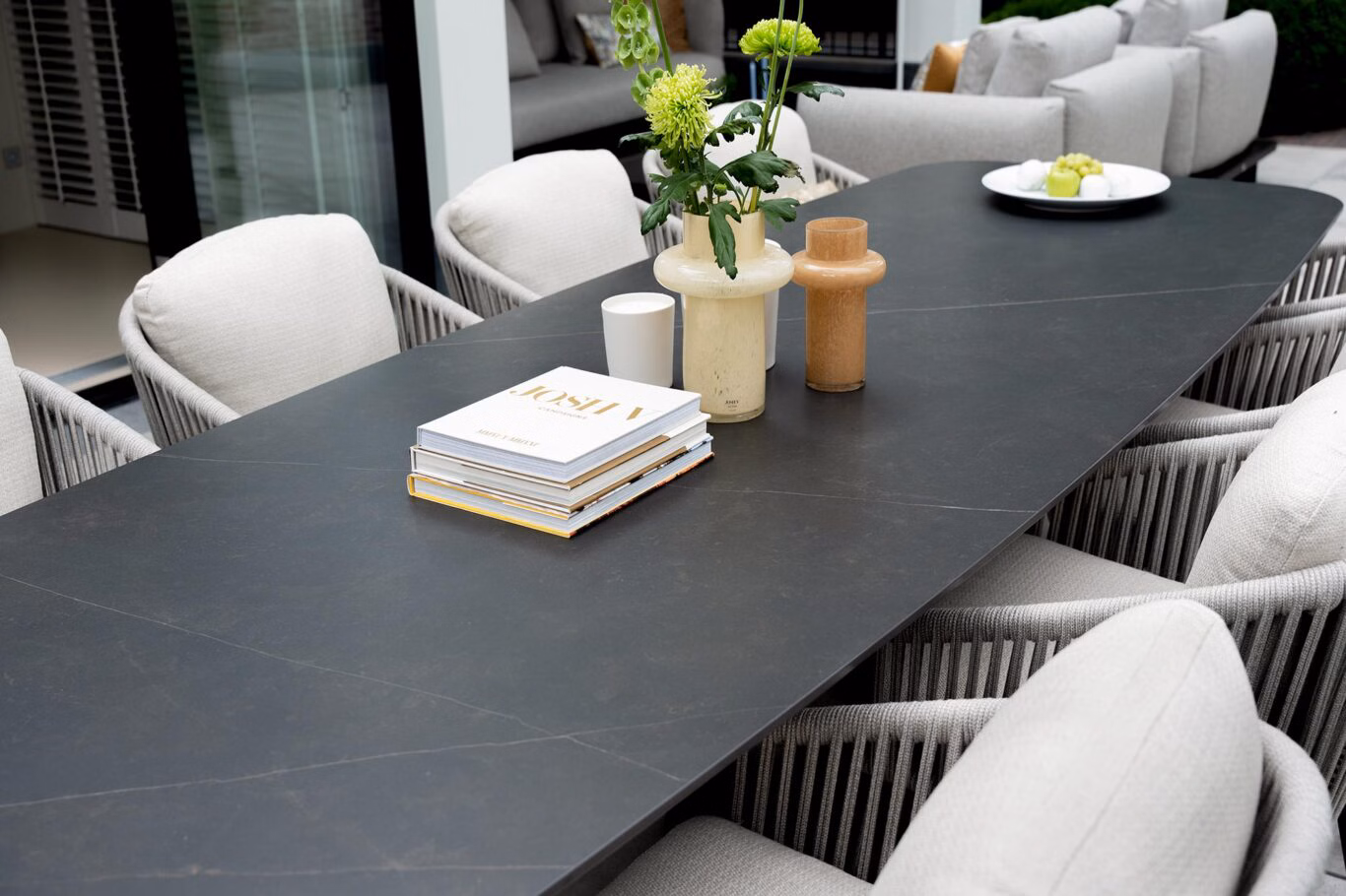 The Palermo is the perfect table. In this variant, the table top is made of Neolith®. A hard-wearing top made from 100% natural raw materials. Available in lengths of 2.80 or 3.20 meters, the Palermo can easily accommodate 10 guests, family members or friends. The frame, made of premium industrial aluminum, combines subtle design with impressive sturdiness.
