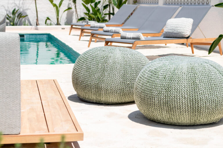 Nuestras alfombras, fabricadas con botellas recicladas de PET, están disponibles en varias formas como cuadrada, rectangular y redonda. Sostenibles, elegantes y perfectas para añadir confort a tu espacio exterior.