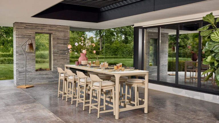 Aluminium is het perfecte materiaal voor buitengebruik dankzij zijn kracht en duurzaamheid. Met een dikte van 1,5 mm en een dubbele coating bieden onze aluminium frames extra stabiliteit en weerbestendigheid. Het elegante ontwerp blijft seizoen na seizoen aantrekkelijk.