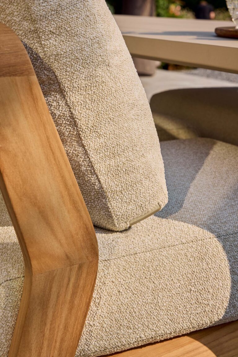 Basta offers pleasant seating comfort thanks to its wide seat and richly padded cushions. These are made of premium outdoor fabric and have a quick-drying core. This allows the chair to stay outside all year round.