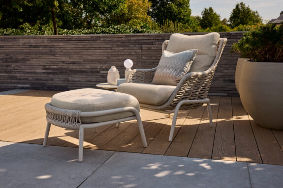 SUNS rope is made of high-quality acrylic and offers excellent properties for outdoor use. The material is strong, weather-resistant, colorfast and easy to clean. Thanks to its sleek weaving technique, rope provides durable comfort and a stylish appearance. Ideal for garden furniture that needs to be both practical and elegant.