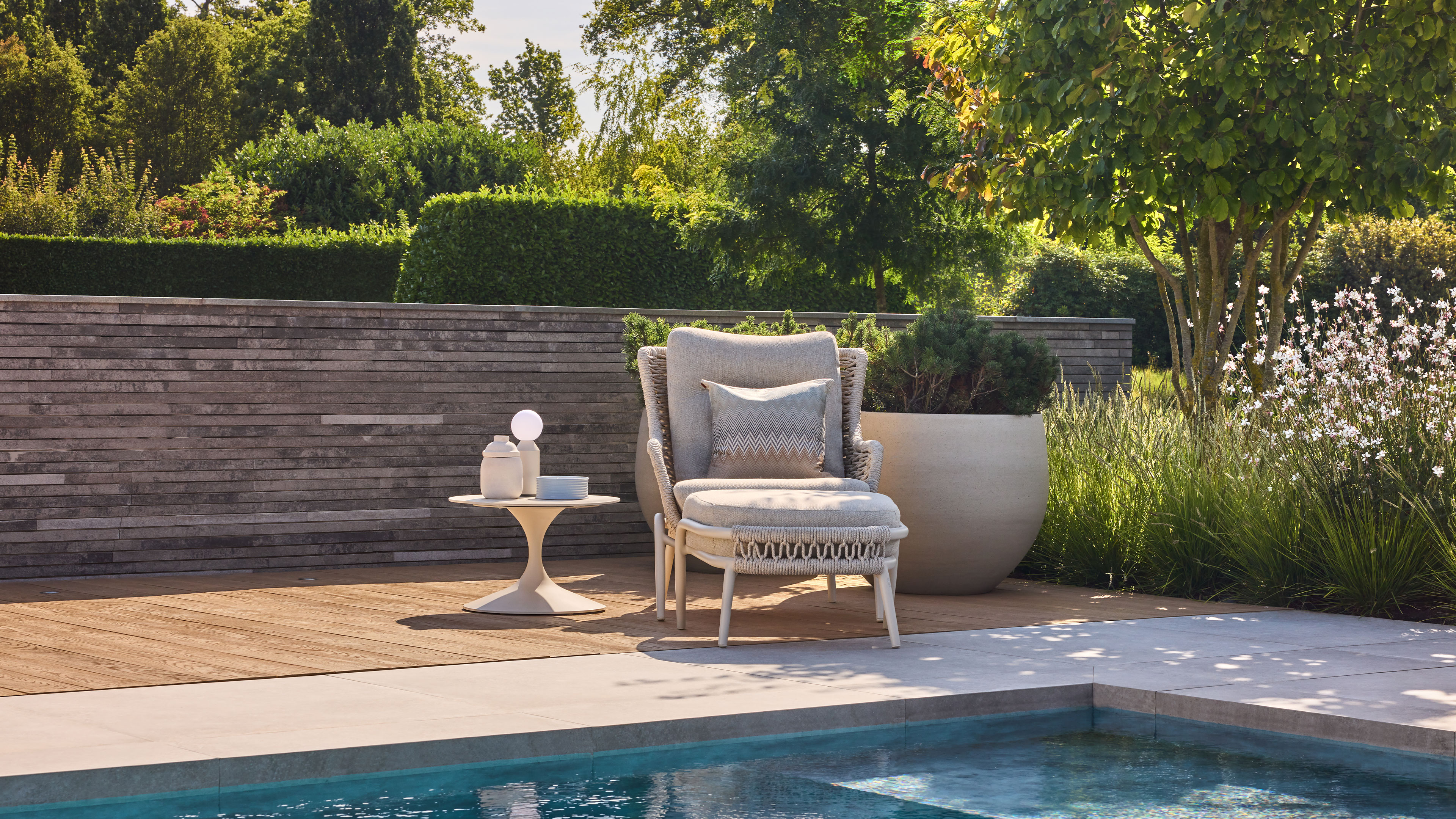 The raised backrest provides additional support for shoulders and head, allowing you to relax deeper. At the same time, it retains the characteristic Casto look: an airy, rounded shape with rich 9 mm rope weave and a soft, inviting seat.