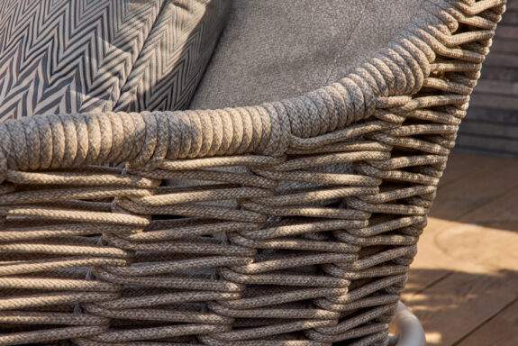 The distinctive weave around the tub consists of high-quality rope work in a voluminous quality rope (9 mm thread). This provides a pleasant touch and first-class seating comfort.