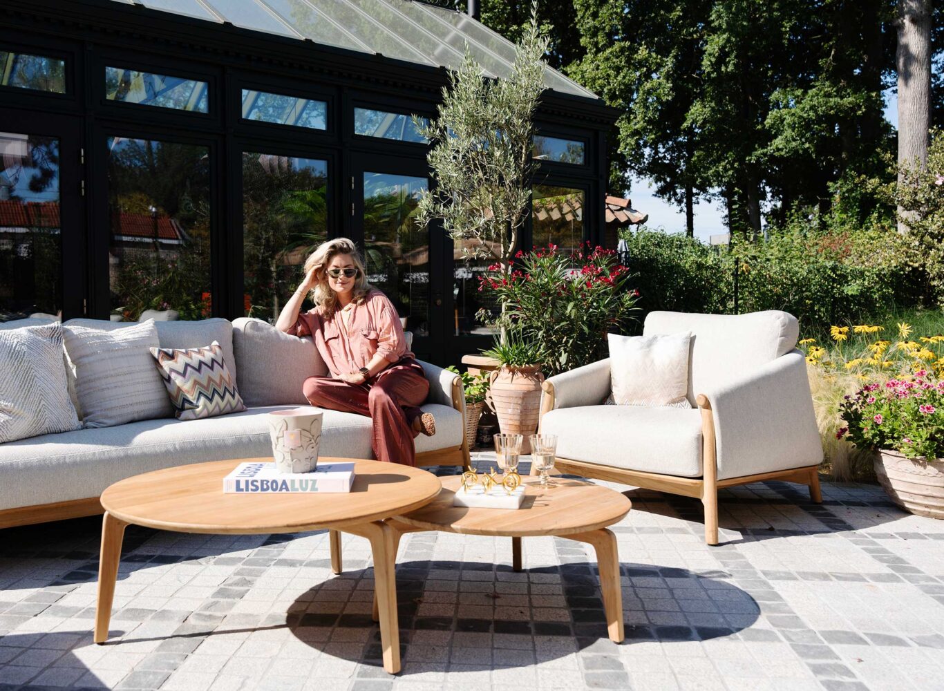 For the lounge area Lotte chose the Bellano sofa set, with teak details and generous cushions. A wonderful place to plop down on, where the children can sit with friends or where the family relaxes together.